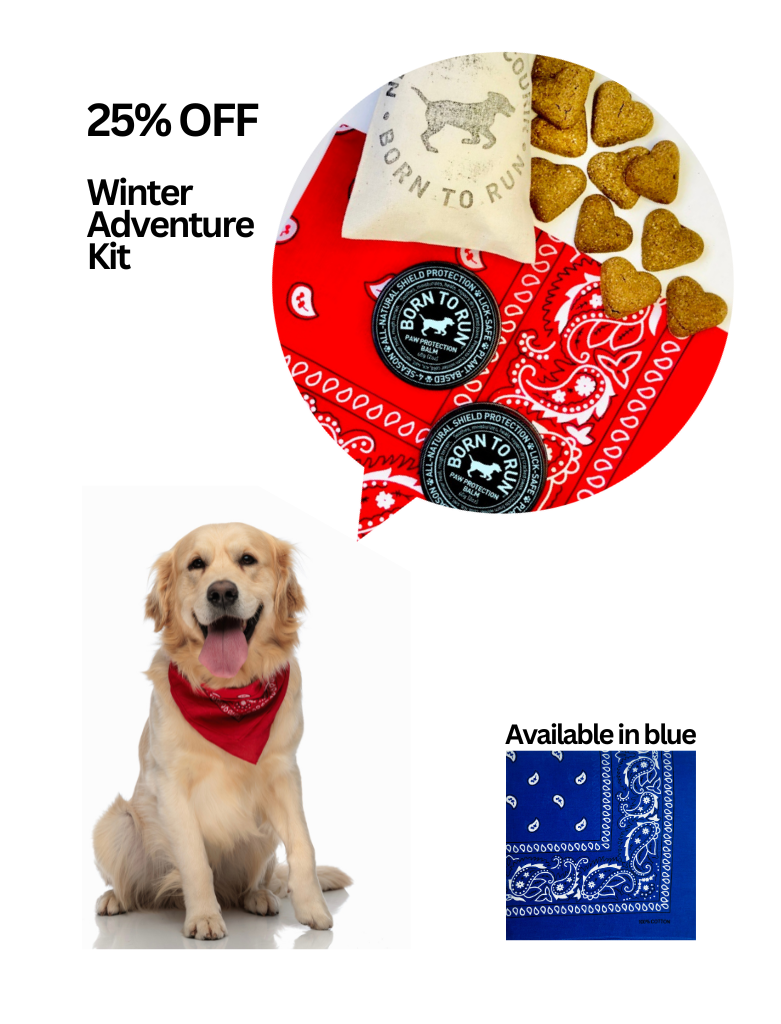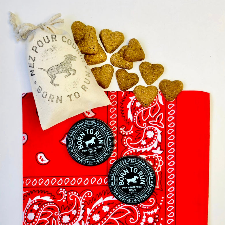 Épargnez 25% sur notre nouveau Kit Été Aventure! Jouer dehors, au parc, en fôret, en montagne, à la plage, ou simplement en promenade dans le quartier, peut être un réel plaisir :) Gardez votre chien confortable cet hiver, et ses pattes et coussinets doux, sécures et en santé toute l'année.